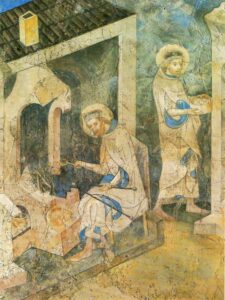 Karlštejnská freska je bohatá na detaily a je tak cenným pramenem vypovídajícím o tom, jak se oplatky v této době pekly.
