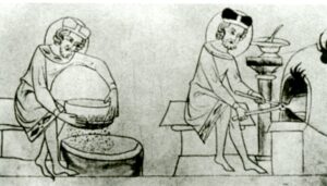 Takto je také kníže Václav zachycen na iluminaci ve Velislavově bibli, která vznikla okolo roku 1340. Můžeme zde rozeznat síto, kterým prosévá mouku, jež musí být pro přípravu oplatek obzvlášť jemně namletá. Oplatkovnici potom vkládá do roztopené pece. Zde je také na sloupku zachycena miska s lžící, kterou lije na ploché čelisti oplatkových kleští těsto.